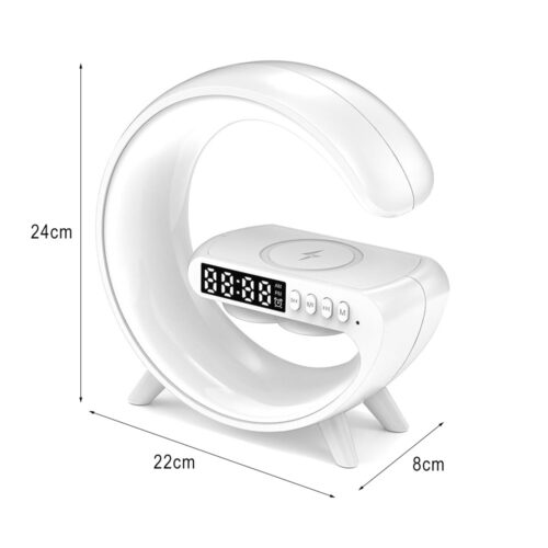 ecobox lampka nocna led ładowarka indukcyjna qi głośnik zegar budzik rgb mała